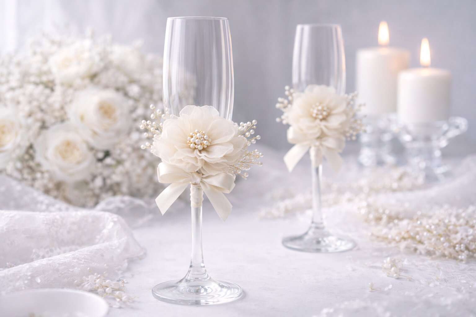 Свадебный декор: бутоньерки, украшение бокалов, банкетных карточек
