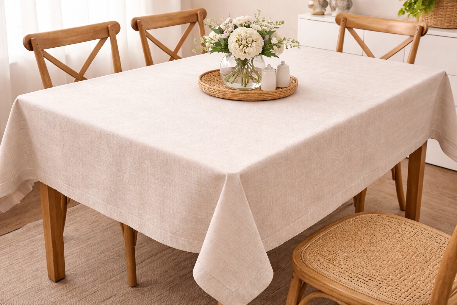 - Повседневная скатерть: Свес 20–25 см с каждой стороны.