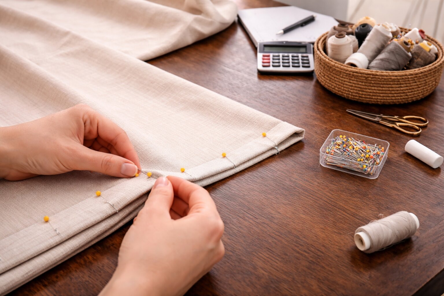- Подгибка края. Обычно край подгибают на 2–3 см. Если используется двойной подгиб, понадобится немного больше ткани.