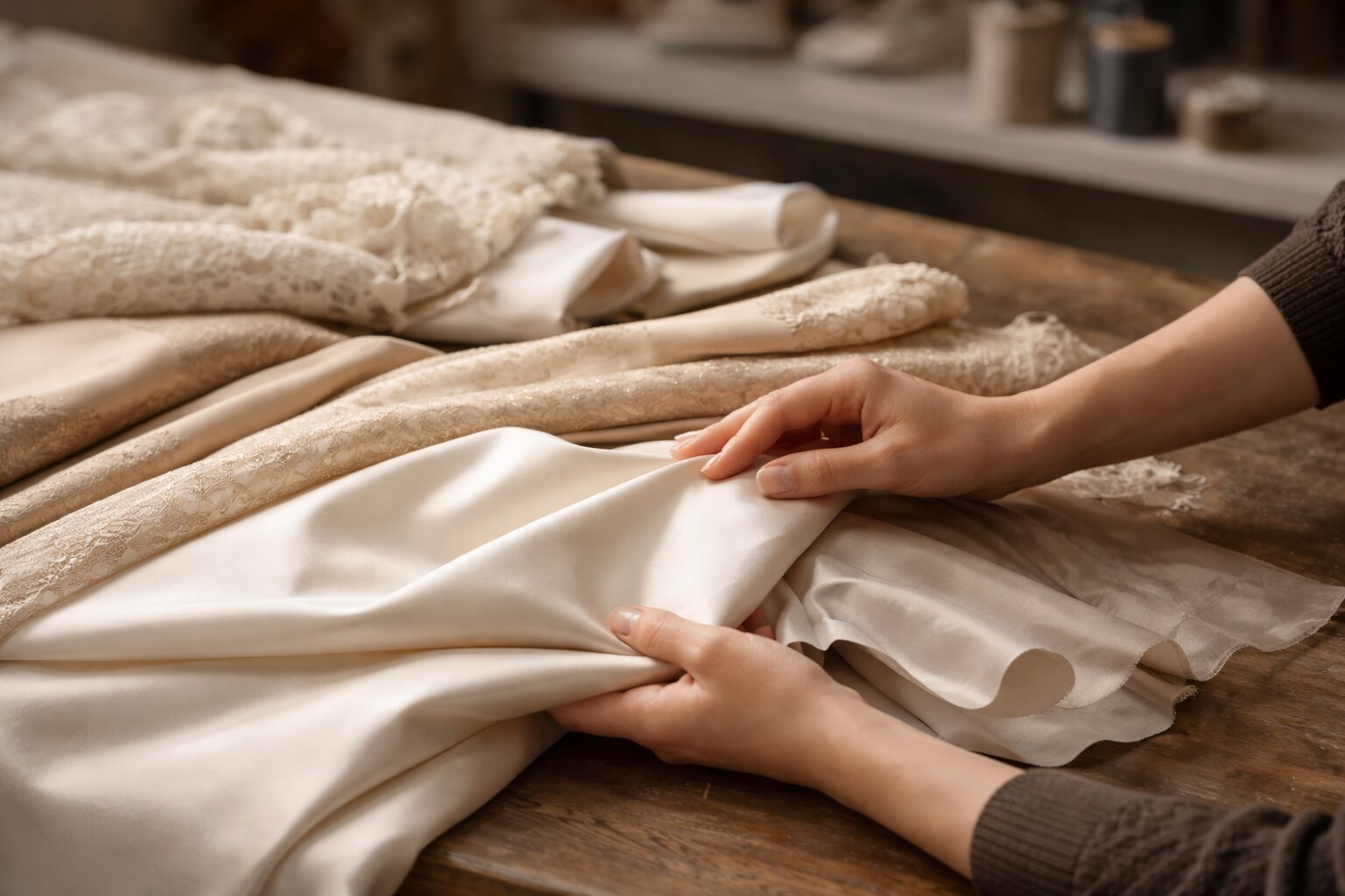 - Дублирование. Проклейте флизелином или дублерином детали внешнего декоративного слоя (атлас, органза) с изнанки. Это придаст им жесткости и предотвратит растяжение.