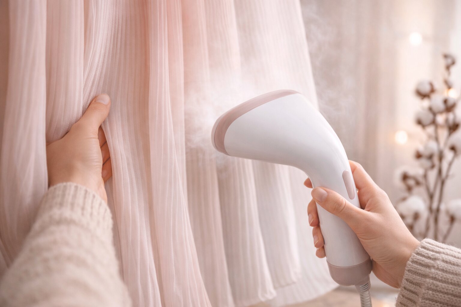 - Если гладите утюгом: Установите режим, соответствующий типу ткани. Используйте функцию отпаривания на максимум. Никогда не прижимайте горячую подошву утюга к складкам плашмя!