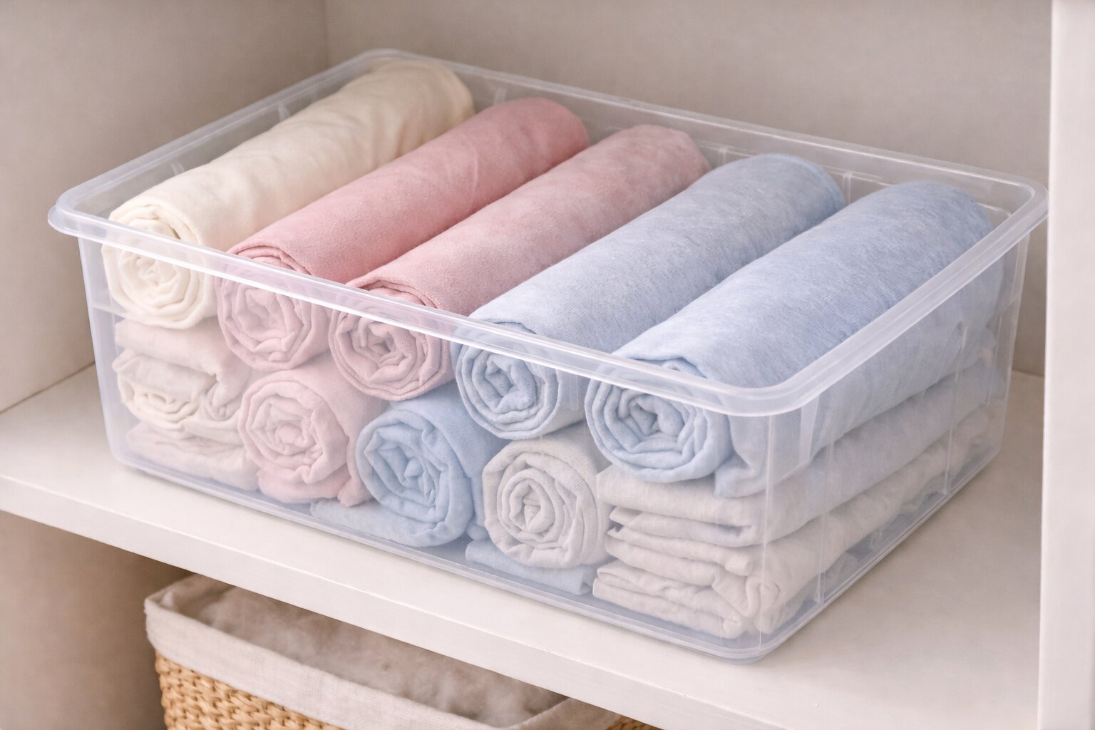 Ткани должны быть изолированы от света. Прозрачные контейнеры допустимы только в полностью тёмном шкафу. Если есть сомнения - выбирайте непрозрачные короба.