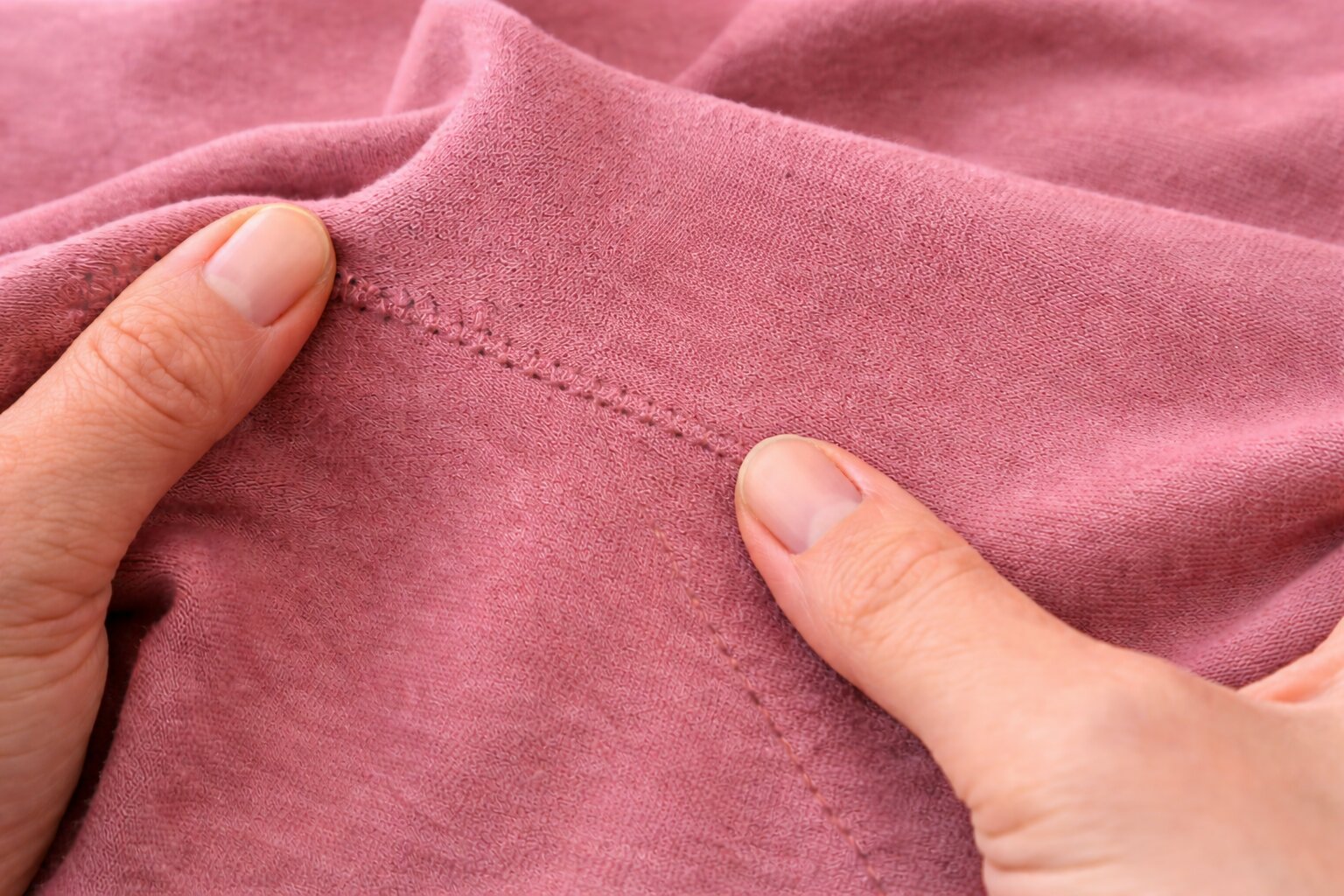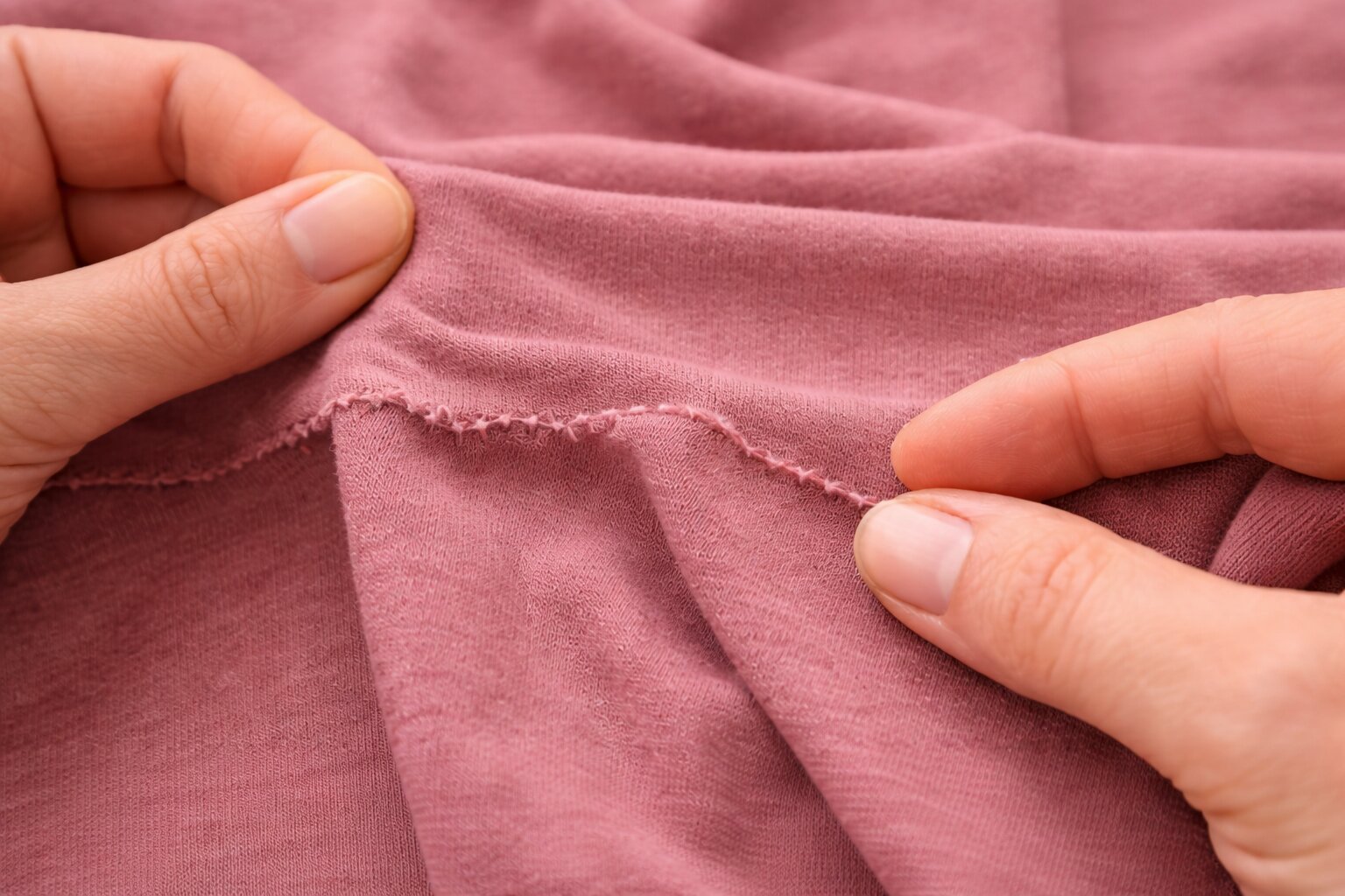 Перед началом работы полезно протестировать материал. Посмотрите, насколько он тянется, скручивается ли по краям, как ведет себя после легкого растяжения. Это поможет подобрать строчку, иглу и понять, нужна ли стабилизация.