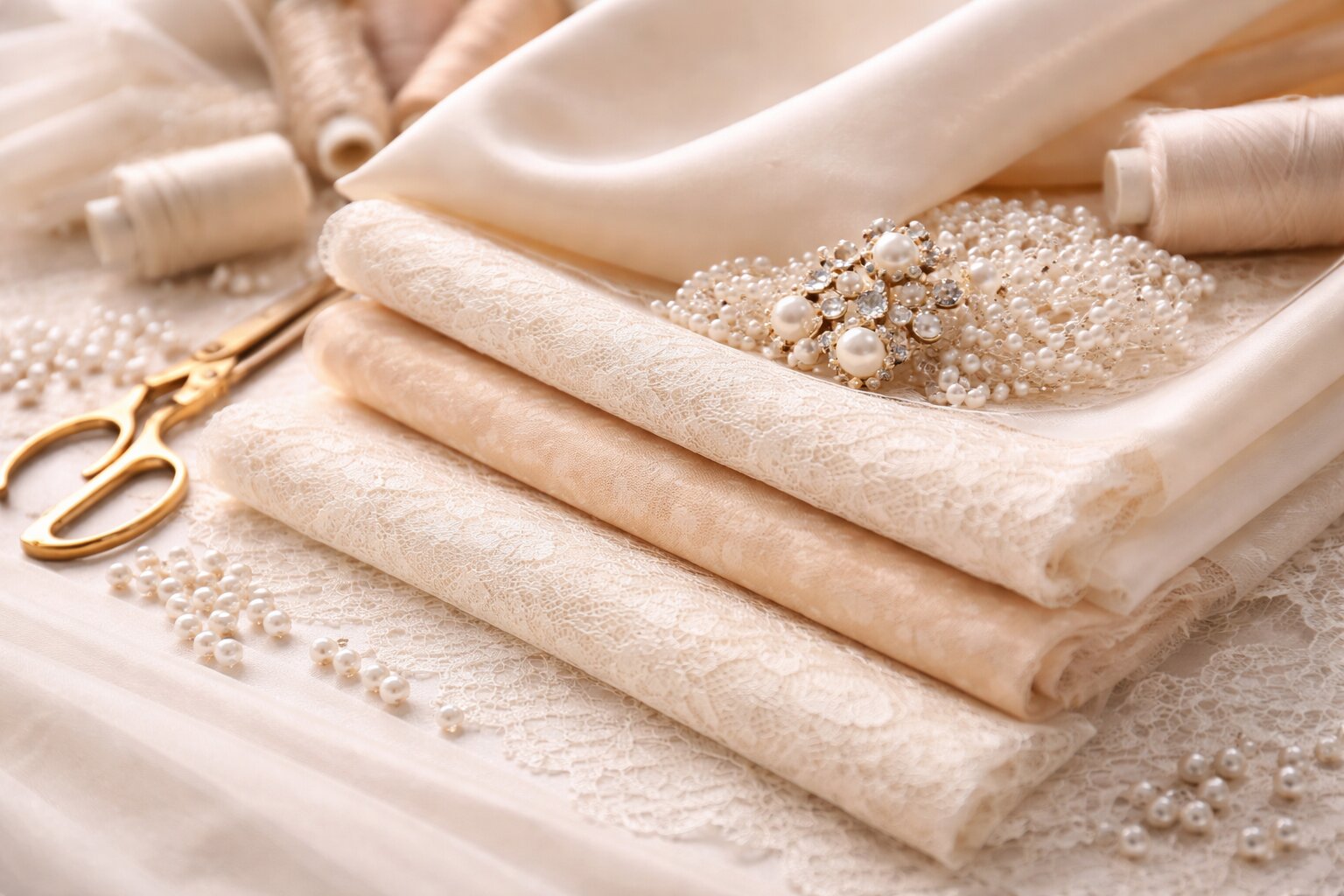 Кружево. Кружево часто используют как декоративный слой поверх плотной основы. Само по себе оно не удержит конструкцию, но может дать очень красивый результат в свадебных и вечерних моделях.