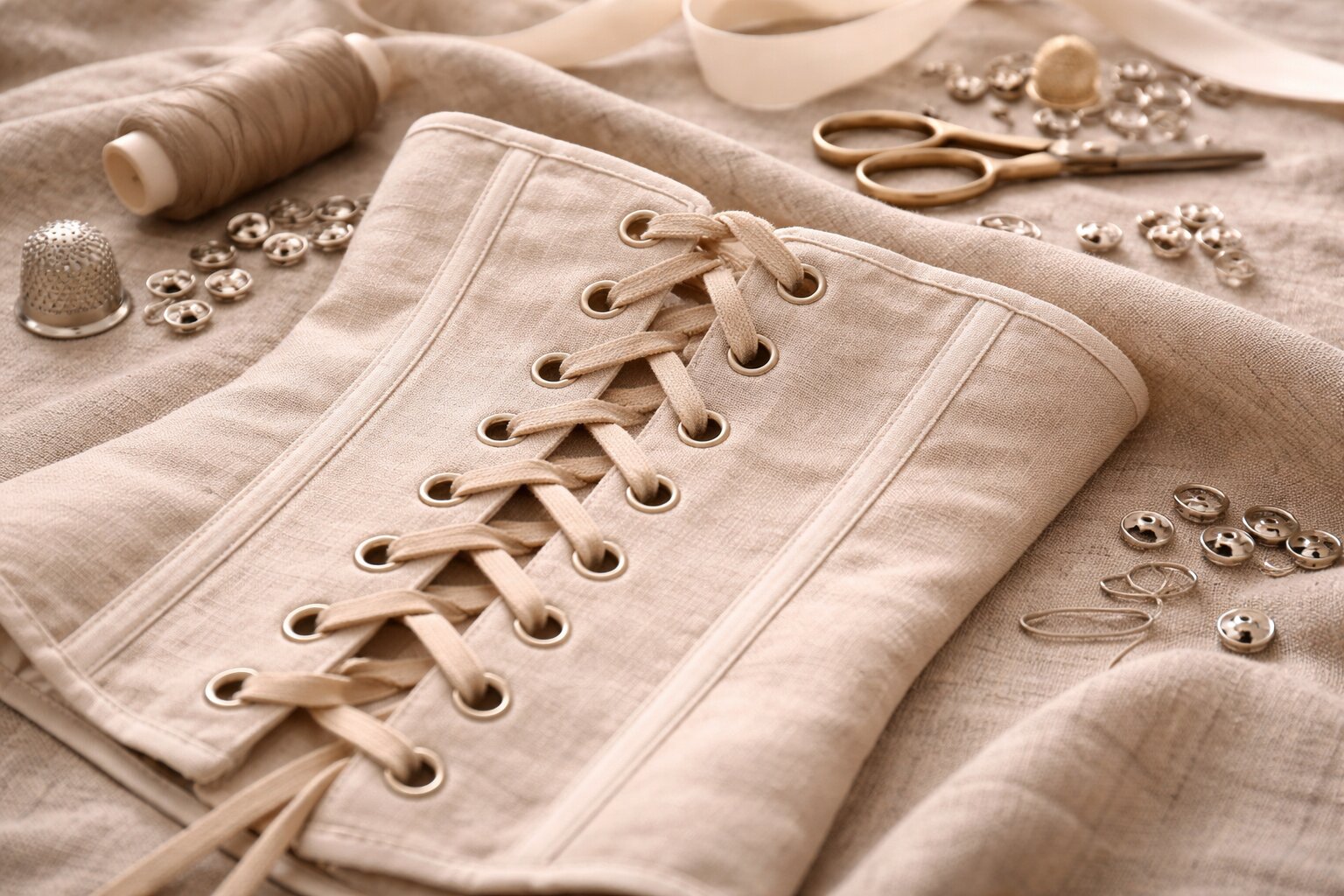 Лучшие ткани для корсета - это те, которые сочетают прочность, стабильность и подходящий внешний вид. Для основы особенно удачны хлопковая корсетная ткань, кутил и хороший корсетный сатин. Для нарядных моделей часто выбирают жаккард, тафту, плотный атлас и декоративные слои вроде кружева.