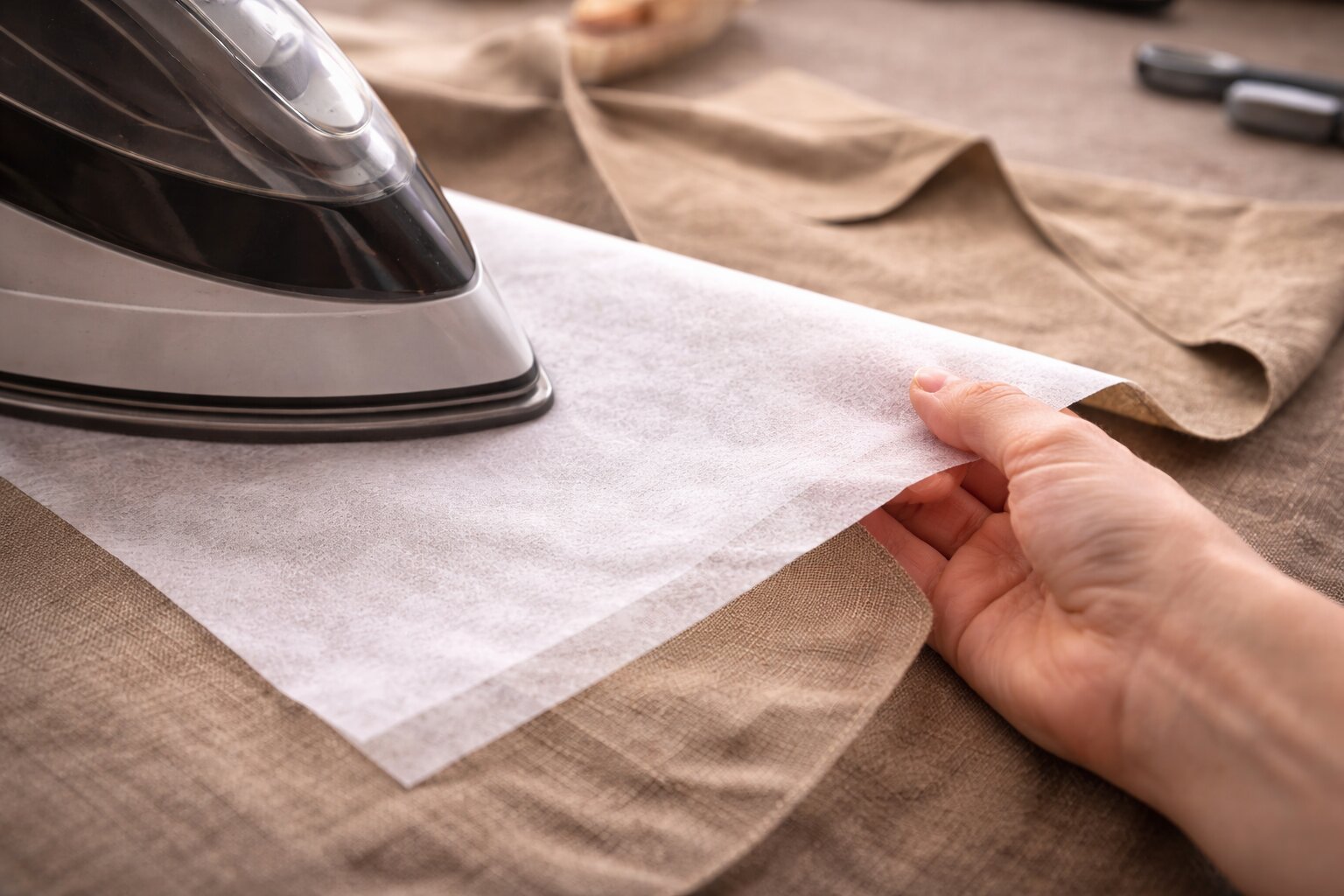 - Процесс: Накладывайте клеевую сторону на изнанку ткани. Накройте проутюжильником или х/б тканью. Утюг поставьте на режим «Шерсть» или «Хлопок» (обычно 130-150°C) БЕЗ ПАРА. Сильно прижмите утюгом, удерживая 10-15 секунд на каждом участке. Двигайтесь последовательно, не допуская смещения.