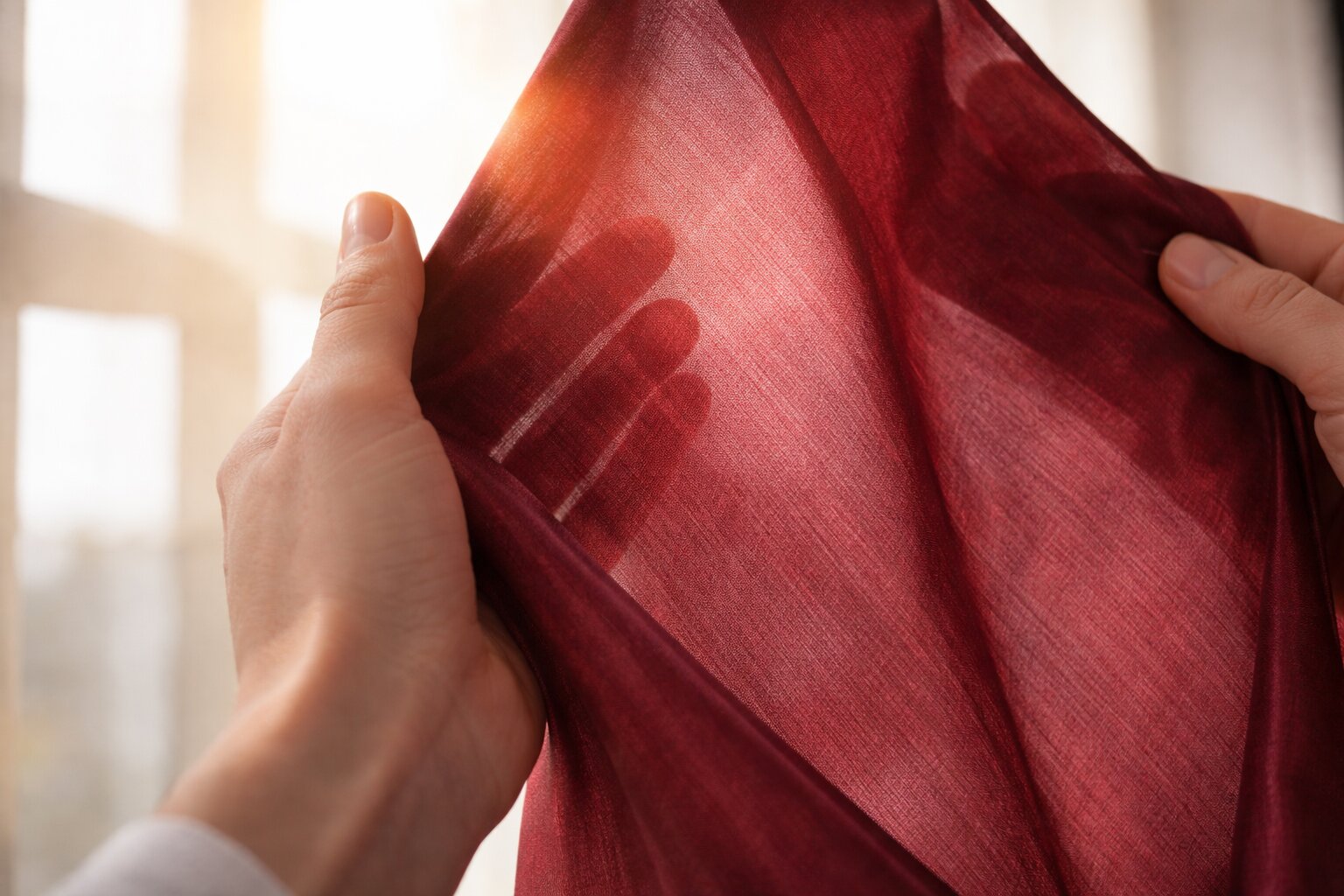 Цвет и равномерность окрашивания Проверьте ткань при дневном свете. Цвет должен быть равномерным по всей ширине полотна, без пятен, полос и участков с разной насыщенностью. Особенно это важно для однотонной тафты, где любые дефекты сразу бросаются в глаза.
