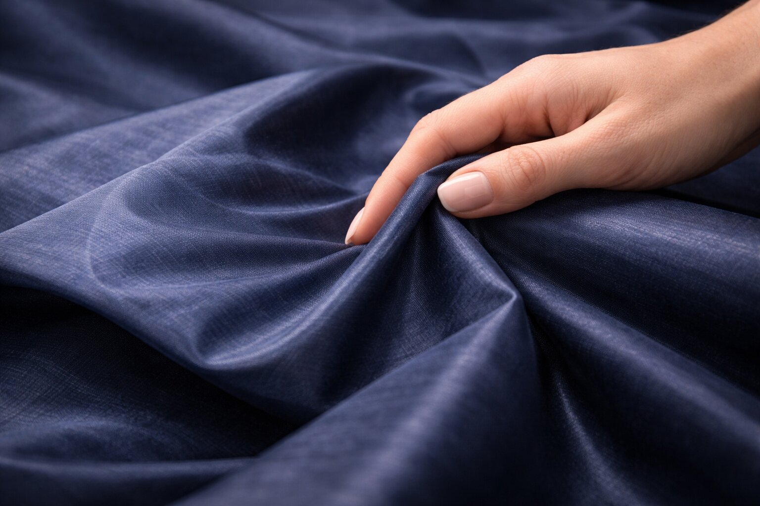 Упругость и поведение в складке Сожмите ткань в руке на несколько секунд, а потом отпустите. Качественная тафта обычно быстро расправляется или сохраняет красивую, четкую складку без ощущения помятости. Если после легкого сжатия на ткани остаются грубые заломы, в готовом изделии это может доставить неудобства.