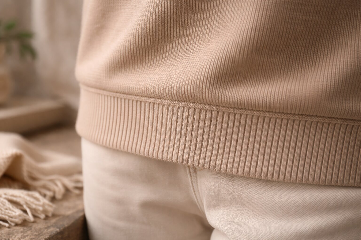 - Манжеты, воротники-стойки, низы свитеров и футболок. Это классическое применение для отделки, так как кашкорсе плотно обхватывает тело, не сползает и сохраняет форму изделия.