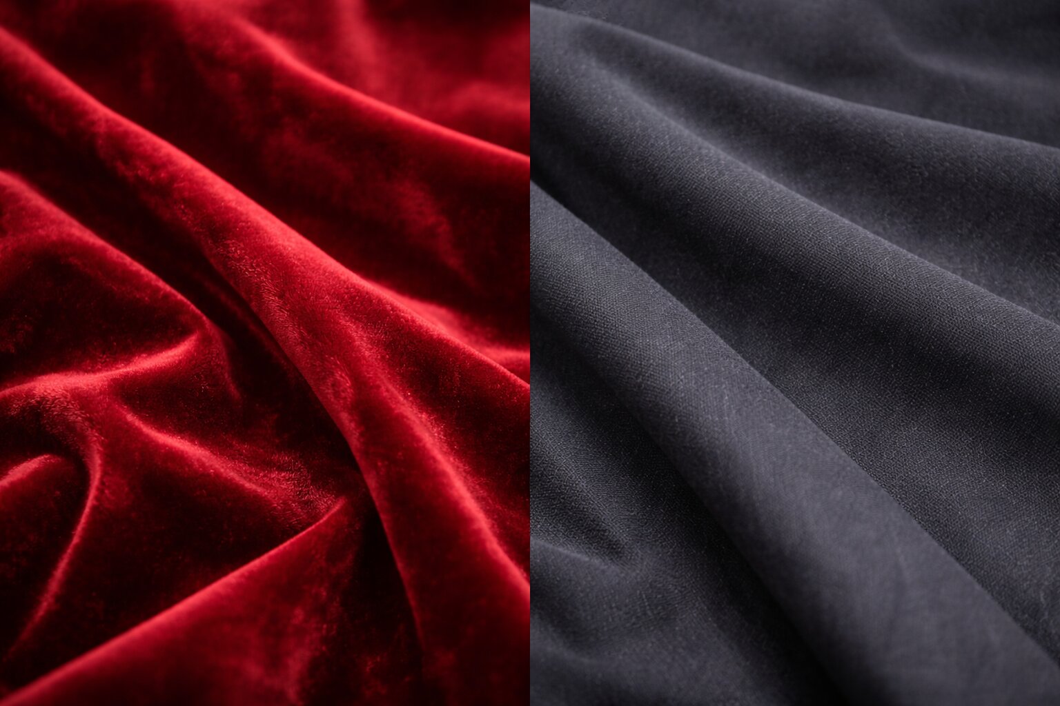 На первый взгляд разница очевидна: бархат мягкий и ворсовый, габардин - гладкий и структурный. Но для правильного выбора важно смотреть глубже: как ткань ведет себя в пошиве, как садится на фигуру, насколько легко за ней ухаживать.