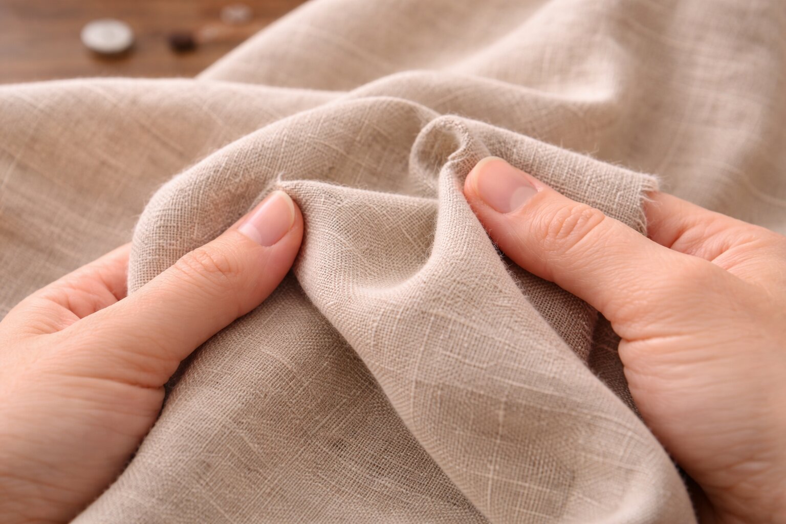 Оценивайте ткань вживую Если есть возможность, посмотрите материал при дневном свете и потрогайте его. У велюра важно оценить густоту ворса, мягкость и равномерность цвета. У льна - плотность, пластичность и степень жесткости. Иногда именно так становится ясно, подойдет ли ткань для конкретной вещи.
