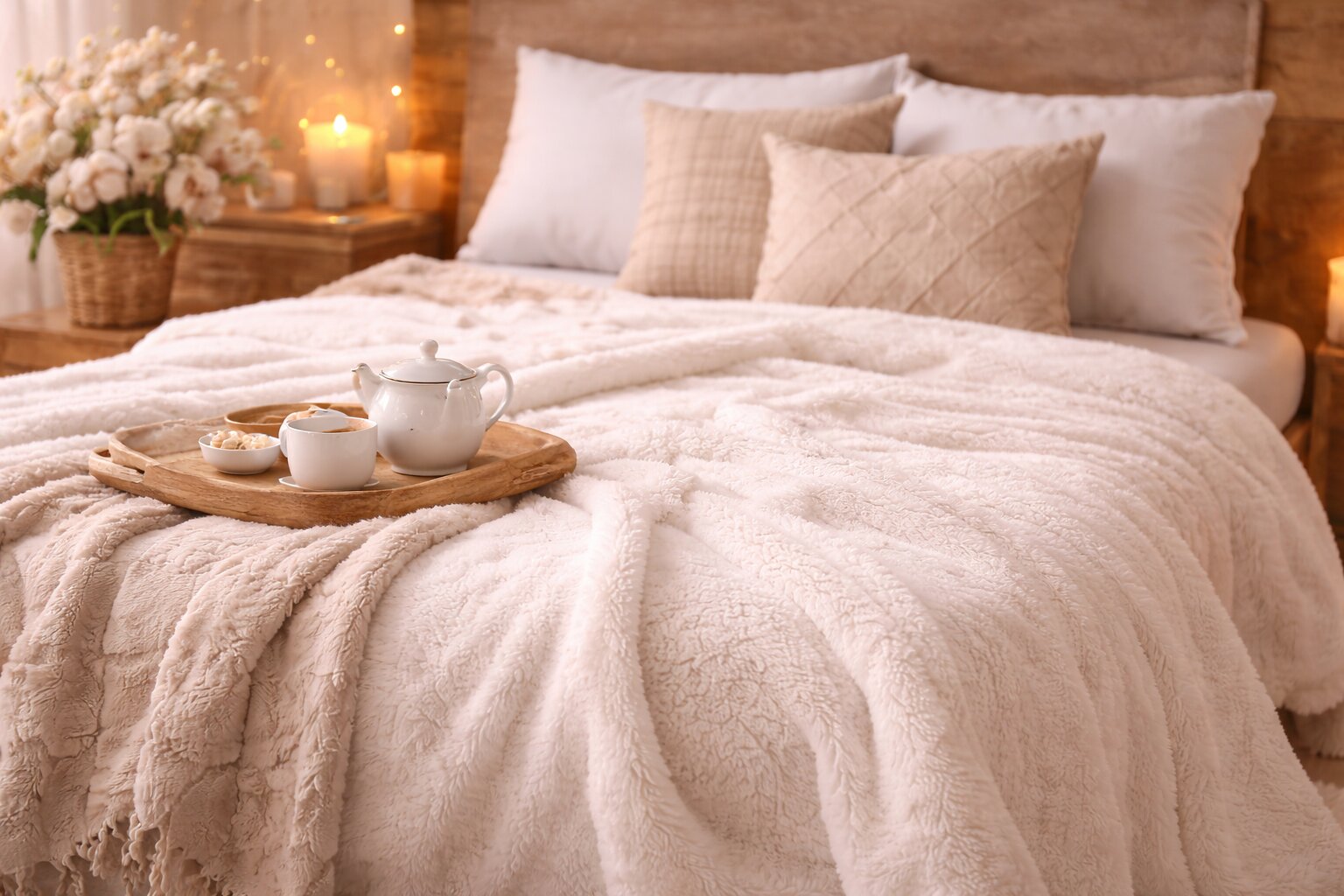- Уютные пледы и накидки на диван.